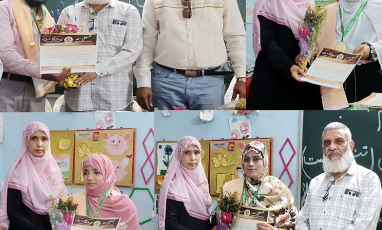 اس تقریب میں شیخ سلمیٰ عبد الشکور ،(رقیہ بیگم اُردو جونیئر کالج)اسماء بیگم دائمی( نرگس اسکول) قریشی عرفانہ باجی (میونسپل کارپوریشن اسکول نمبر 13)،پروین باجی ( اقبال اسکول) زرینہ کمٹھے باجی( حضرت سورت شاہ اسکول)شیخ لبنیٰ سحر باجی(اقبال اسکول) قاضی نازنین باجی(اقبال اسکول) کو اُن کی خدمات کے لئے توصیفی سند، گل و شال پوشی کرکے تہنیت پیش کی گئی ۔ ضلع آرگنائزر سلیم الند سر ،اور قریشی عرفانہ باجی نے کم وقت میں بہترین انتظامات کیے ۔