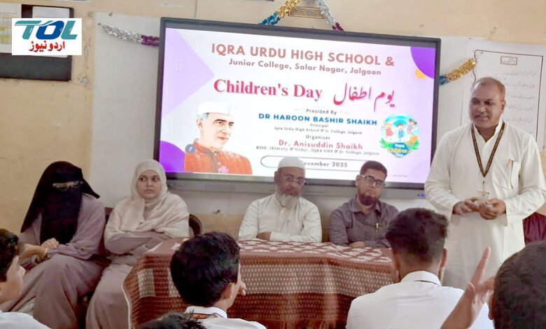 اقراء ایجوکیشن سوسائٹی کے زیر اہتمام اقراء اردو ھائی اسکول و جونیئر کالج سالار نگر جلگاؤں میں یوم اطفال پروگرام کا انعقاد کیا گیا۔ جس کی صدارت ذاکر خان نے کی۔اس موقع پر نور محمد شیخ، فرحت تبسم خان، ثنا شیخ فرحان، اسنا ذیشان خان، بطور مہمان خصوصی موجود تھے۔ فیضان جاوید کی تلاوت قرآن سے پروگرام کا آغاز ہوا ۔ جنید عیسی پنجاری نے نعت رسولﷺ پڑھ کر محفل کو روشن کیے۔ڈاکٹر انیس الدین شیخ نے افتتاحی کلمات بیان کرتے ہوئے کہا کہ پنڈت نہرو کی یوم پیدائش کی نسبت سے یوم اطفال منایا جاتا ہے۔