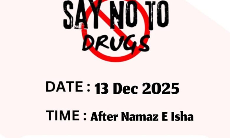 اس موقع پر غریب نواز ریلیف فاؤنڈیشن، ممبئی ریجن کے صدر پروفیسر عارف عطاری ممبئی سے تشریف لائیں گے، جو بڑی اسکرین کے ذریعے منشیات کے نقصانات اور اس سے بچنے کےطریقوں پر خصوصی خطاب فرمائیں گے۔تاریخ: 13 دسمبر 2025، بروز سنیچر وقت: رات 8:30 بجے مقام: شہید عبدالحمیدچوک،تامباپور جلگاؤں، تمام افراد سے گزارش ہے کہ زیادہ سے زیادہ تعداد میں شرکت فرماکر اس نیک مہم کو کامیاب بنائیں۔کی اپیل GNRF ٹیم، جلگاؤں کی جانب سے کی جاتی ہے۔ مزید جانکاری کے لئے درج ذیل نمبروں پر رابطہ کریں ۔