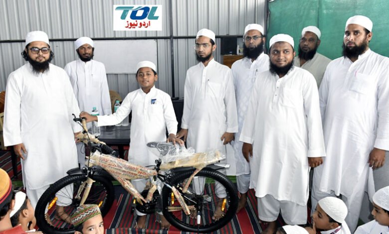 تقریب میں دو خوش نصیب طلبہ شیخ زکریا شیخ خورشید ، محمّد سفیان خان امجد خان کو بطور انعام سائیکل دی گئی۔ مکتب کے ذمہ دار حضرت مولانا سید انس صاحب کی کوششوں سے طلبہ میں نماز کی بیداری اور شعور دن بدن فروغ پارہا ہے۔ مولانا نے اس موقع پر فرمایا کہ نماز ہر مومن کے لیے نہ صرف فریضہ ہے بلکہ کامیابی کی ضمانت بھی ہے۔