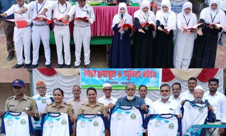 جلگاؤں (عقیل خان بیاولی): ملّت ایجوکیشنل اینڈ ویلفیئر سوسائٹی،کے زیر انتظام ملّت ہائی اسکول اینڈ جونیئر کالج مہرون کے میدان پرصابر ملّا صاحب کے ہاتھوں پرچم کشائی کی گئی۔بعد ازیں شعبہ پرائمری اسکول کے ننھے منّوں کا ثقافتی پروگرام اپنی روایت کے مطابق بہت شاندار رہا۔ پروگرام کے بعد مہمانان کے ہاتھو ں ملّت ہائی اسکول کے کھیلوں کے،کلاس ڈیکوریشن کے اور دیگر مقابلوں کے انعامات کی تقسیم کئے گئے۔اسی طرح اسکول کی نئی اسپورٹس جرسی کا پولس افسر مادھوری بورسے کے ہاتھوں اجراء کیا گیا۔