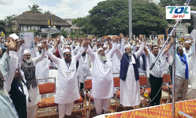 چکمگلور، 25/ اگست (پریس ریلیز): کرناٹک کے ضلع چکمگلور کے آزاد پارک کی تاریخی سرزمین پر آل انڈیا مسلم پرسنل لا بورڈ کے زیر اہتمام ”وقف بچاؤ دستور بچاؤ تحریک“ کی ضلعی کمیٹی کی جانب سے ایک عظیم الشان احتجاجی”وقف بچاؤ دستور بچاؤ کانفرنس“ منعقد ہوئی جس میں علماء کرام، مختلف تنظیموں کے ذمہ داران اور سماجی رہنماؤں نے شرکت کرتے ہوئے وقف ترمیمی قانون 2025 کے خلاف بھرپور آواز بلند کی۔ مقررین نے اپنے خطابات میں کہا کہ یہ ترمیم مسلمانوں کے دینی، سماجی اور تعلیمی ڈھانچے پر براہ راست حملہ ہے جسے کسی بھی صورت قبول نہیں کیا جائے گا۔اس موقع پر آل انڈیا مسلم پرسنل لا بورڈ کے رکن اور جمعیۃ علماء کرناٹک کے صدر مفتی افتخار احمد قاسمی نے اپنے پرجوش خطاب میں کہا کہ مسلمانوں پر حالات کا آنا کوئی نئی بات نہیں بلکہ یہ آزمائشیں اللہ کی طرف سے ایمان اور صبر کا امتحان ہیں، جنہیں مردانہ وار مقابلہ کرتے ہوئے ثابت قدم رہنا ہوگا۔