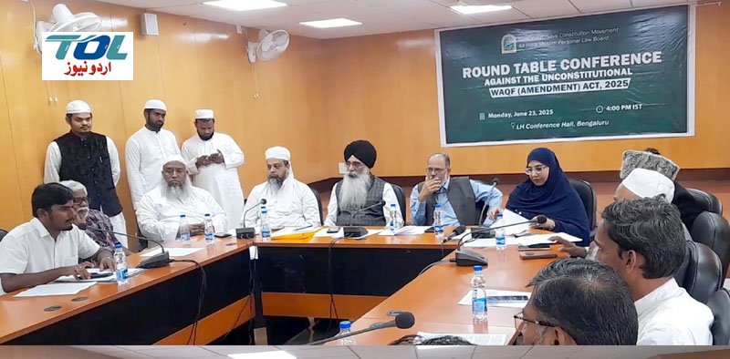 بنگلور، 24؍ جون (پریس ریلیز): ریاست کرناٹک کے دارالحکومت بنگلور کے تاریخی اور باوقار ودھان سودھا کے ایل ہیچ کے کانفرنس ہال میں آل انڈیا مسلم پرسنل لا بورڈ کی زیر قیادت جاری’’ وقف بچاؤ،دستور بچاؤ تحریک‘‘ کے تحت مختلف مذاہب کے رہنما، مذہبی تنظیموں کے ذمہ داران اور سول سوسائٹی کے اہم شخصیات کے درمیان غیر آئینی وقف ترمیمی قانون 2025 ء کے سلسلے میں ایک اہم گول میز کانفرنس کا انعقاد عمل میں آیا۔ یہ اجلاس نہ صرف مسلمانوں کی اوقافی املاک پر ہونے والے خطرناک حملے کے خلاف تھا بلکہ ہندوستان کے آئینی اور جمہوری ڈھانچے کے تحفظ کی ایک گونج دار صدا بھی تھا۔ اس اجلاس میں ریاست کی مختلف مذہبی برادریوں، اقلیتی طبقات، دینی و ملی تنظیموں، ممتاز وکلاء، انسانی حقوق کے کارکنان اور سول سوسائٹی کے ذمہ داران نے بڑی تعداد میں شرکت کی۔ قابل ذکر بات یہ ہے کہ ہندو، عیسائی، سکھ، بدھ اور جین مذاہب کے رہنماؤں نے مسلمانوں کی اس جدوجہد کو محض اقلیت کی لڑائی نہیں بلکہ ہندوستان کے دستور کے دفاع کی لڑائی قرار دیا، اور کھلے الفاظ میں اس تحریک کے ساتھ قدم بہ قدم چلنے کا وعدہ کیا۔