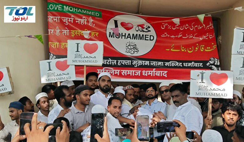 دھرم آباد (نامہ نگار): نبی کریم ﷺ کی شان میں گستاخی کے خلاف 20 ستمبر کو دھرم آباد شہر میں ایک عظیم الشان احتجاجی ریلی نکالی گئی۔ اس ریلی میں بڑی تعداد میں مسلمانوں نے شرکت کی۔